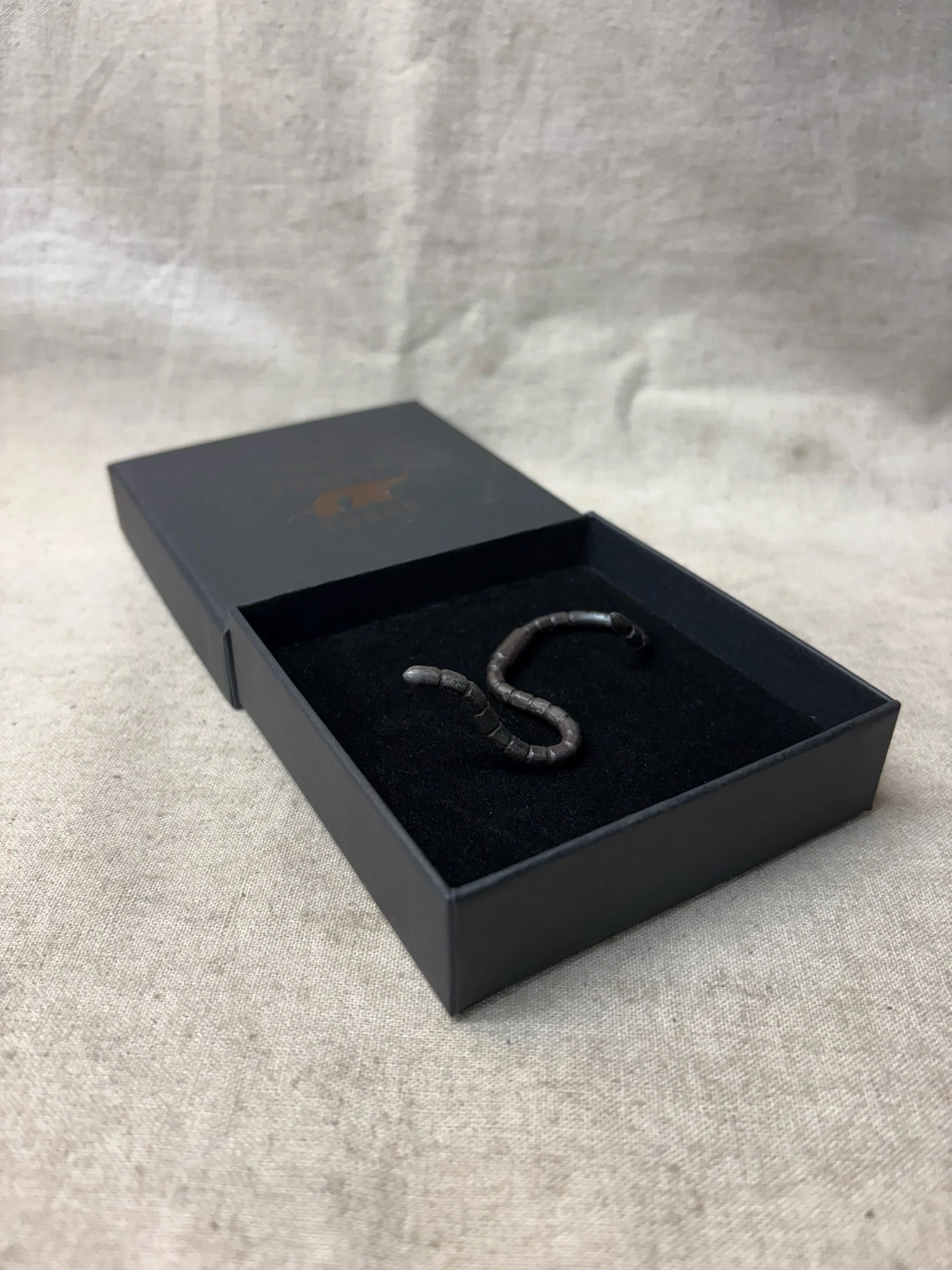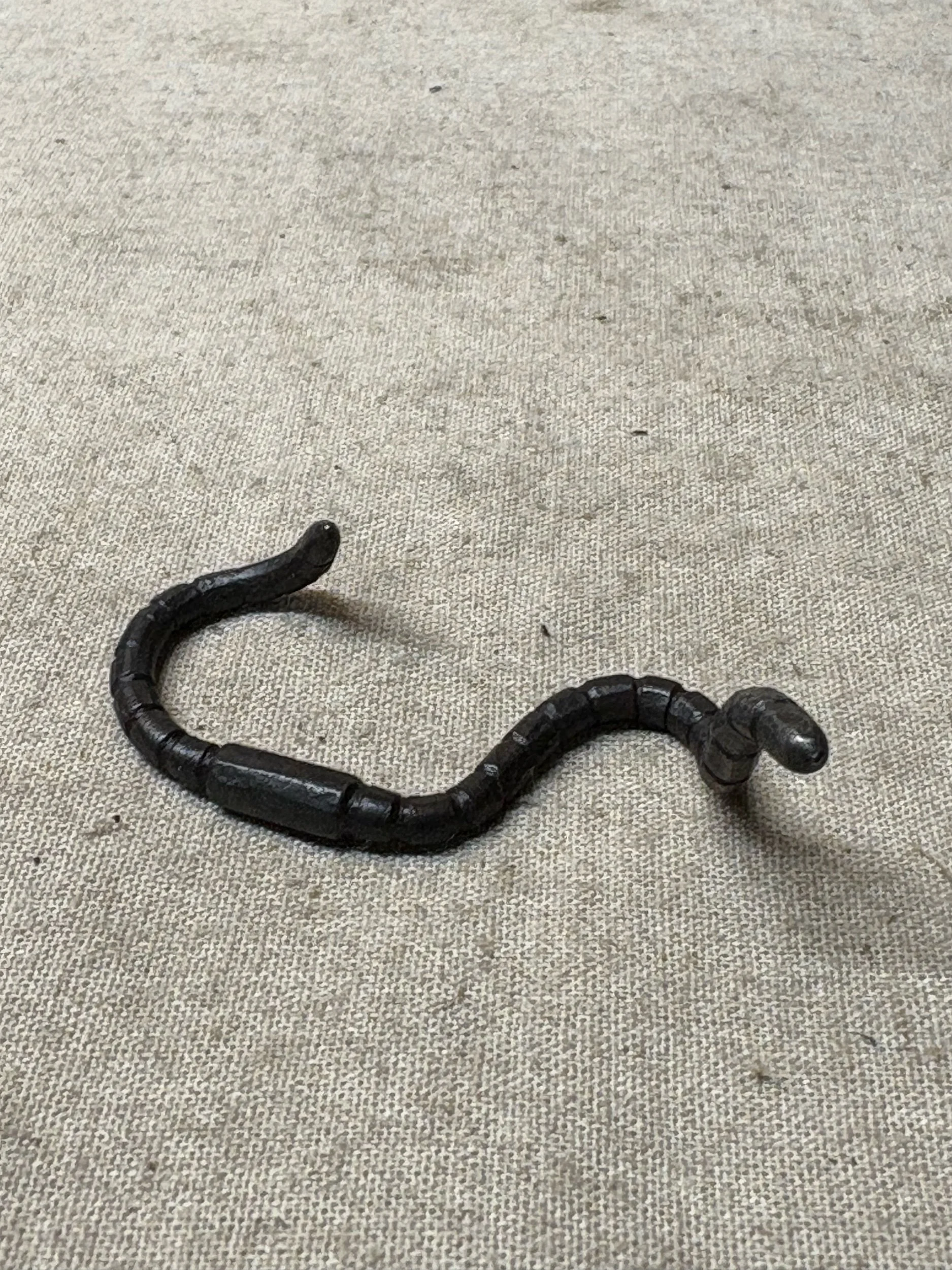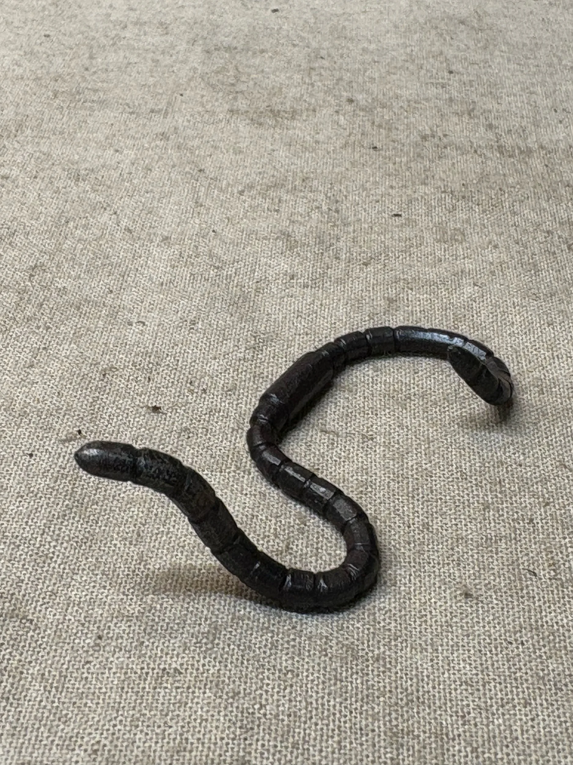 Here is a little handforged worm, made from mild steel with a scale blackened finish. My worms are all handmade and individually shaped, and each one has a unique personality!