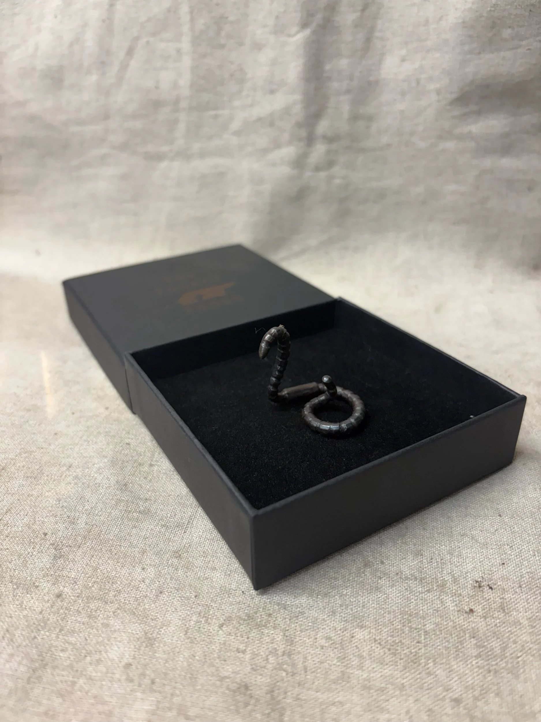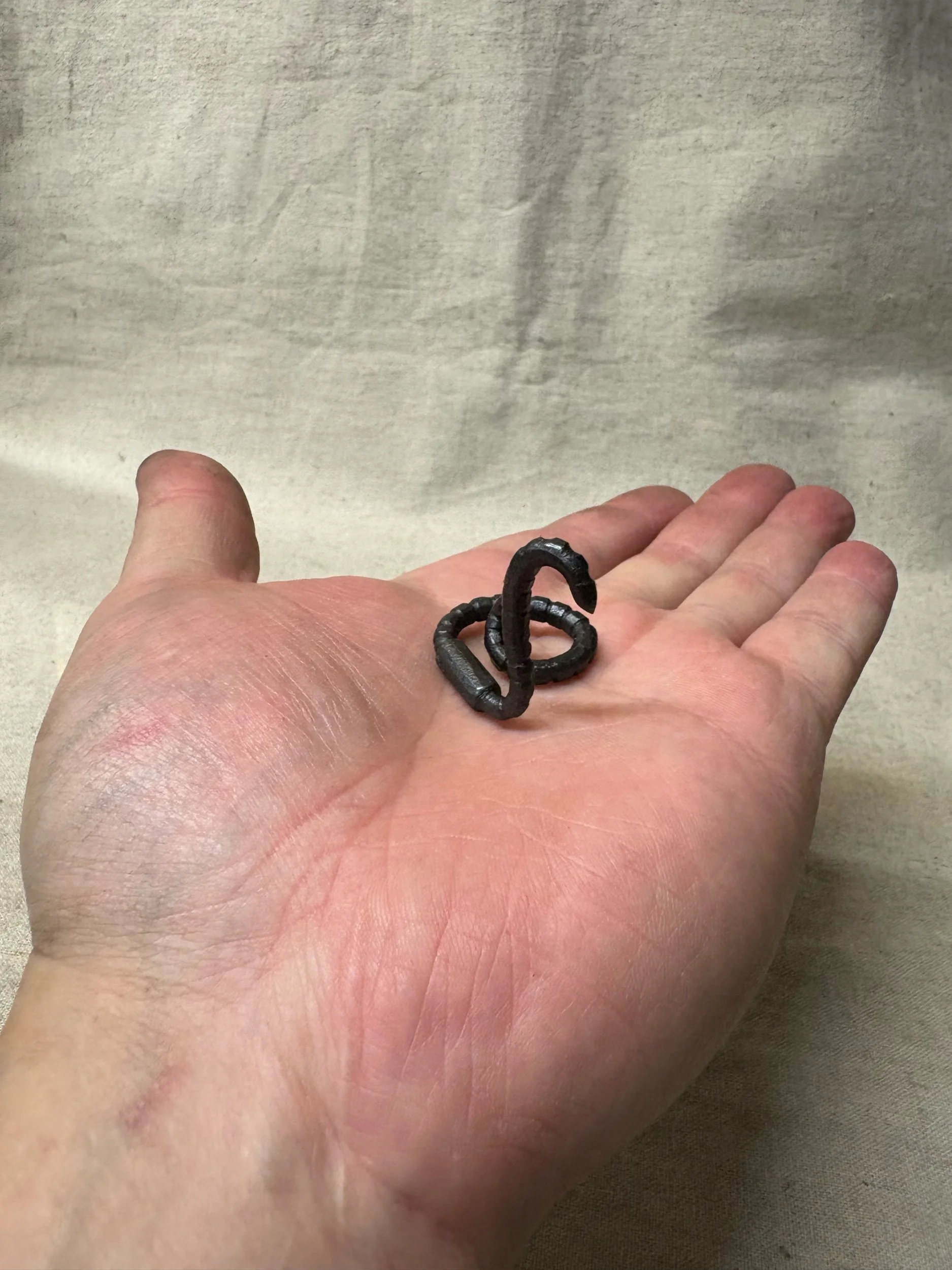 Here is a little handforged worm, made from mild steel with a scale blackened finish. My worms are all handmade and individually shaped, and each one has a unique personality! All of Filagrees relationships, friendships and acquaintancies end in bitter enmity. Will your friendship break that cycle?