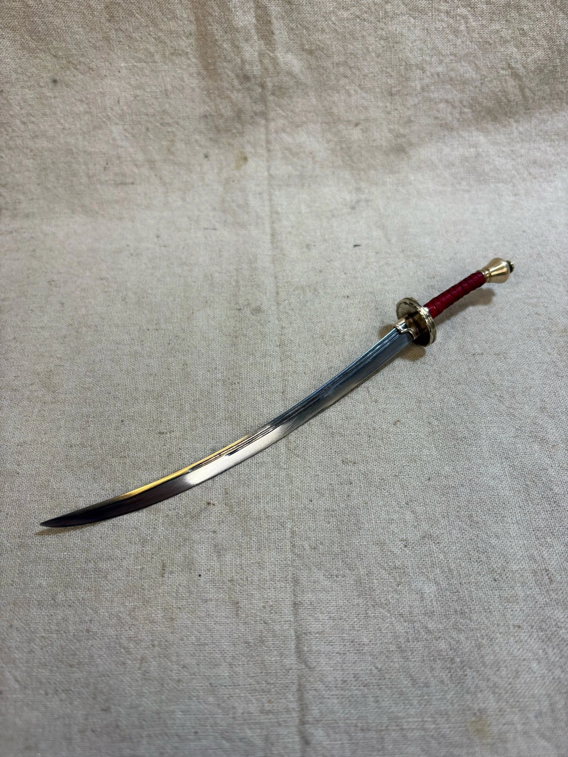 This is a Mongolian style sabre, in 1/6th scale. The Mongolian empire had a wide spread influence over a long period and incorporated a range of elements from various cultures, and this piece reflects the design of various Chinese sabres,